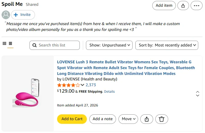 IF YOU BUY ME A NEW VIBRATOR, I WILL SEND YOU A FULL 30 MIN VID & PHOTO SET OF ME USING IT